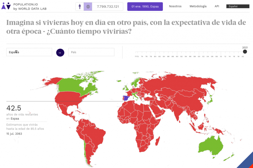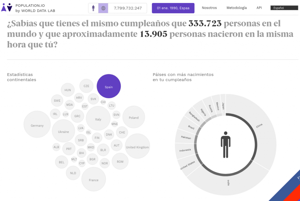Con el reloj de población mundial Population.io descubre tu vida en números y fechas gracias a los datos demográficos oficiales de Naciones Unidas, añadiendo tu fecha de nacimiento, país de nacimiento y género podrás saber cual es tu lugar en la población mundial, la previsión de vida, si eres más mayor o menor que la media de la población mundial y cuantas personas hacen los años el mismo día que tu, gracias a las estadísticas mundiales, continentales y por países.