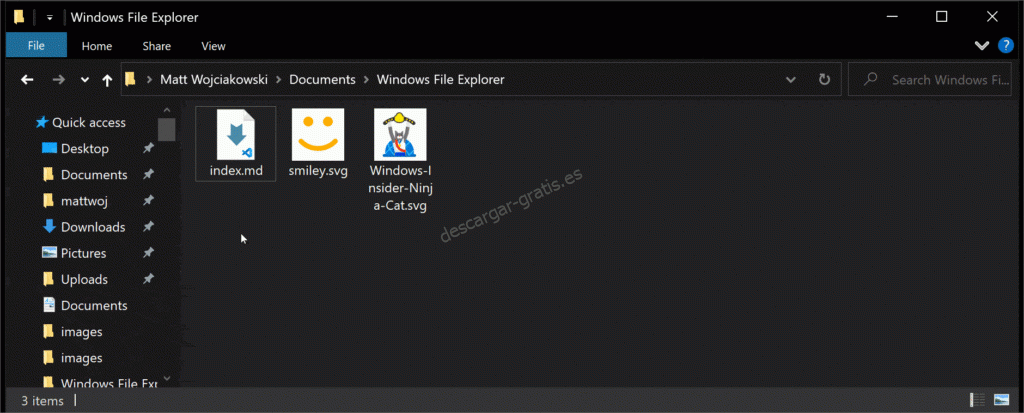 Habilita un panel de vista previa de iconos SVG y archivos MD. Haciendo clic en el menú Ver > Panel de vista previa.