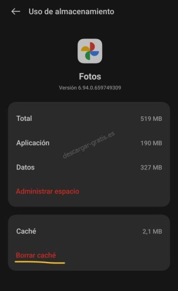 - Una vez se haya borrado la caché de Google Fotos puedes salir de Ajustes.