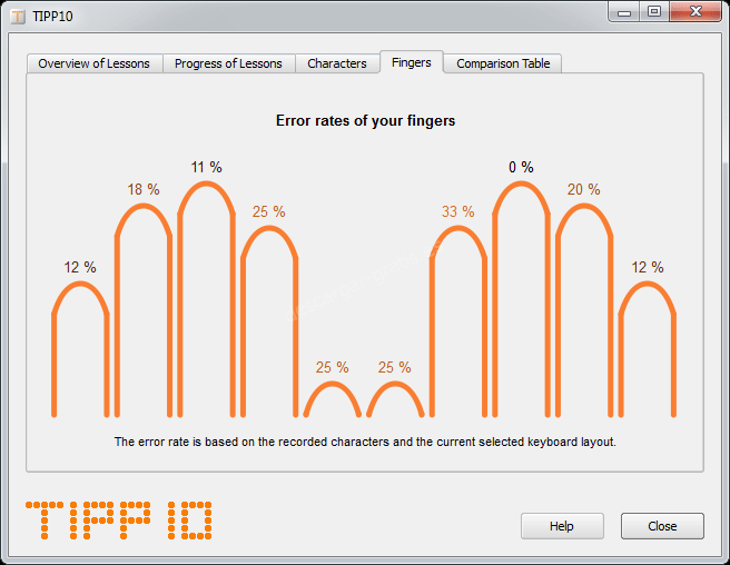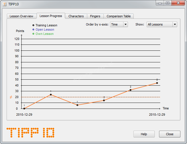 También tiene estadísticas de estudios con los caracteres y pulsaciones más complicadas en su progresión de aprendizaje.